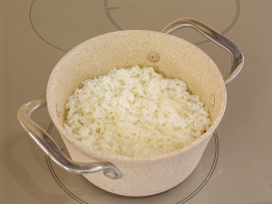 Если вы используете обычный круглозерный рис, его надо хорошо промыть, и засыпать в кипящую, подсоленную воду, из расчета 1 стакан риса, 2 стакана воды.