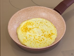 Пожарить на разогретой сковороде, смазанной растительным маслом, с одной стороны.