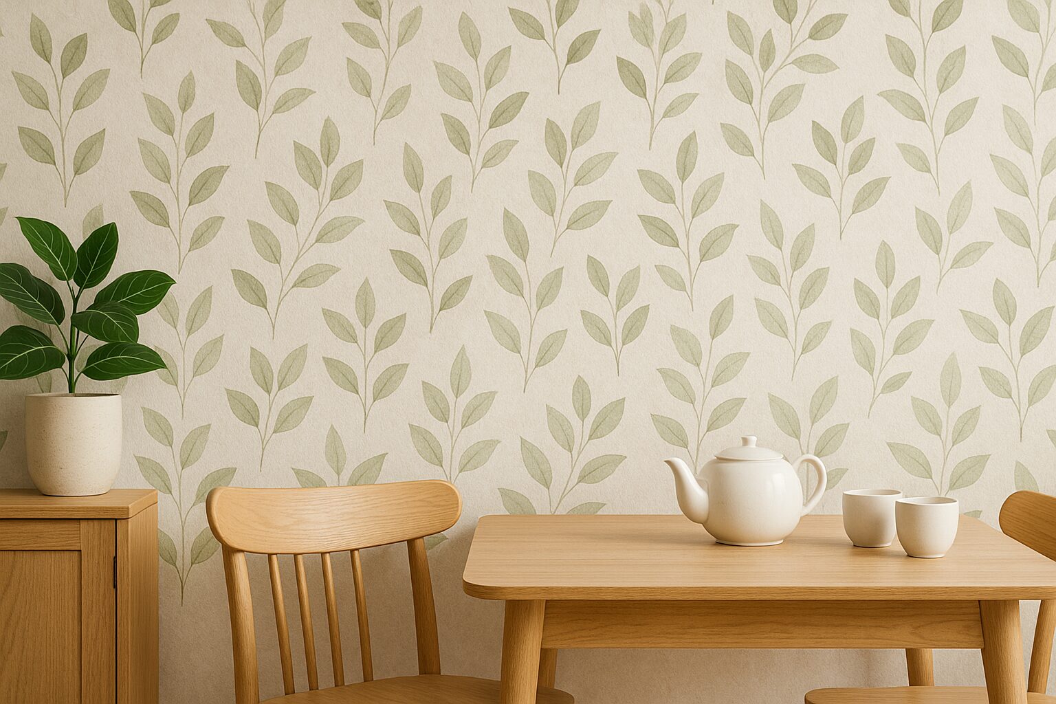 Примеры: флизелиновые обои с акварельными листьями, бежевые фактуры под траву, текстильные поверхности с нежной флористикой.