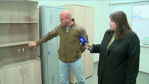 «В состав нашего контракта, в состав поставки входила определенная мебель. Платяные шкафы для переодевания, со стеклянными дверками для медикаментов. На данный момент они стоят в этом кабинете, так как работы еще продолжаются на станции», — поясняет Алексей Оверин, заместитель директора по строительству компании «Профстрой» г. Иркутск.