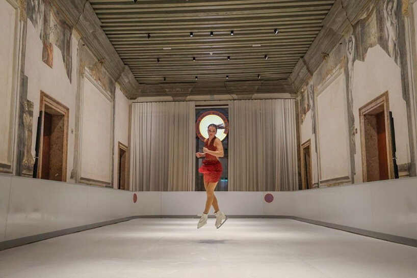 Eisfeld II: Enjoy / Survive to Palazzo Diedo — это инсталляция немецкого художника Олафа Николая, которая переосмысляет пространство банкетного зала Palazzo Diedo. Проект приурочен к зимним Олимпийским играм-2026 и открыт до 22 февраля. Технология искусственного льда позволяет катку безопасно существовать в историческом помещении с фресками в стиле барокко. По задумке автора, этот контраст подчеркивает напряженность между историческим постоянством и временным телесным опытом. По обе стороны катка размещены круглые лайтбоксы с зацикленной надписью ENJOY/SURVIVE. Таким образом Николай рассматривает катание на коньках, которое обычно ассоциируется с игрой и удовольствием, как рискованное действие, требующее контроля и выносливости. В сочетании с музыкальным сопровождением свет превращает площадку в пространство для размышлений.